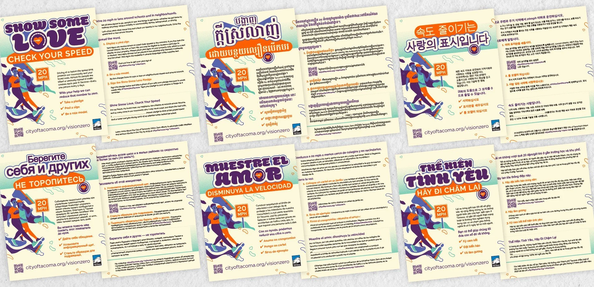 Following the success of the campaign, the city passed a new speed limit law effective January 2023 and asked for a corresponding campaign revamp. I delivered a new but parallel look-and-feel in the form of another billboard, yard signs, animations, poster, and direct mail — similarly translated into five additional languages to reach a wider audience. Later, a local humanitarian influencer became the face of the project.
